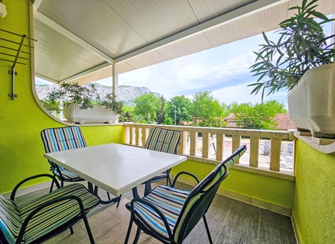 Het ligt op de begane grond met uitzicht op de straat en is ideaal voor koppels of kleine gezinnen met huisdieren. Breng vele aangename uren door op het grote terras. Hier kun je genieten van je ochtendkoffie terwijl je de activiteiten en excursies van de dag plant. Later kun je genieten van het uitzicht en de zwoele zomeravonden tijdens een heerlijk diner.