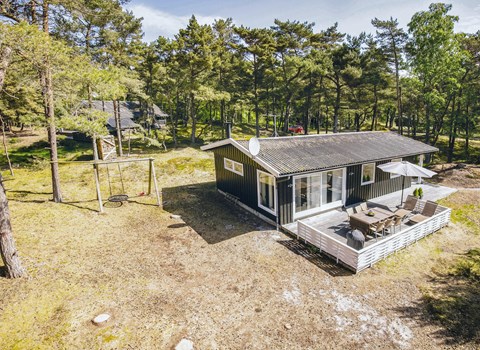 Vakantiehuis in een populair gebied aan het Skovmose strand, met ruimte voor zes personen plus een viervoeter. Het huis is het hele jaar door geïsoleerd, met open haard, warmtepomp en airconditioning, wat vooral aangenaam is op warme zomerdagen. Het huis is omgeven door open en gesloten terrassen voor heerlijke uren buiten. Er zijn veel entertainment faciliteiten op het terrein zoals de schommel en zandbak, speelhuisje, jeu de boules veld en vuurplaats. Twee comfortabele ligstoelen zijn ook beschikbaar.