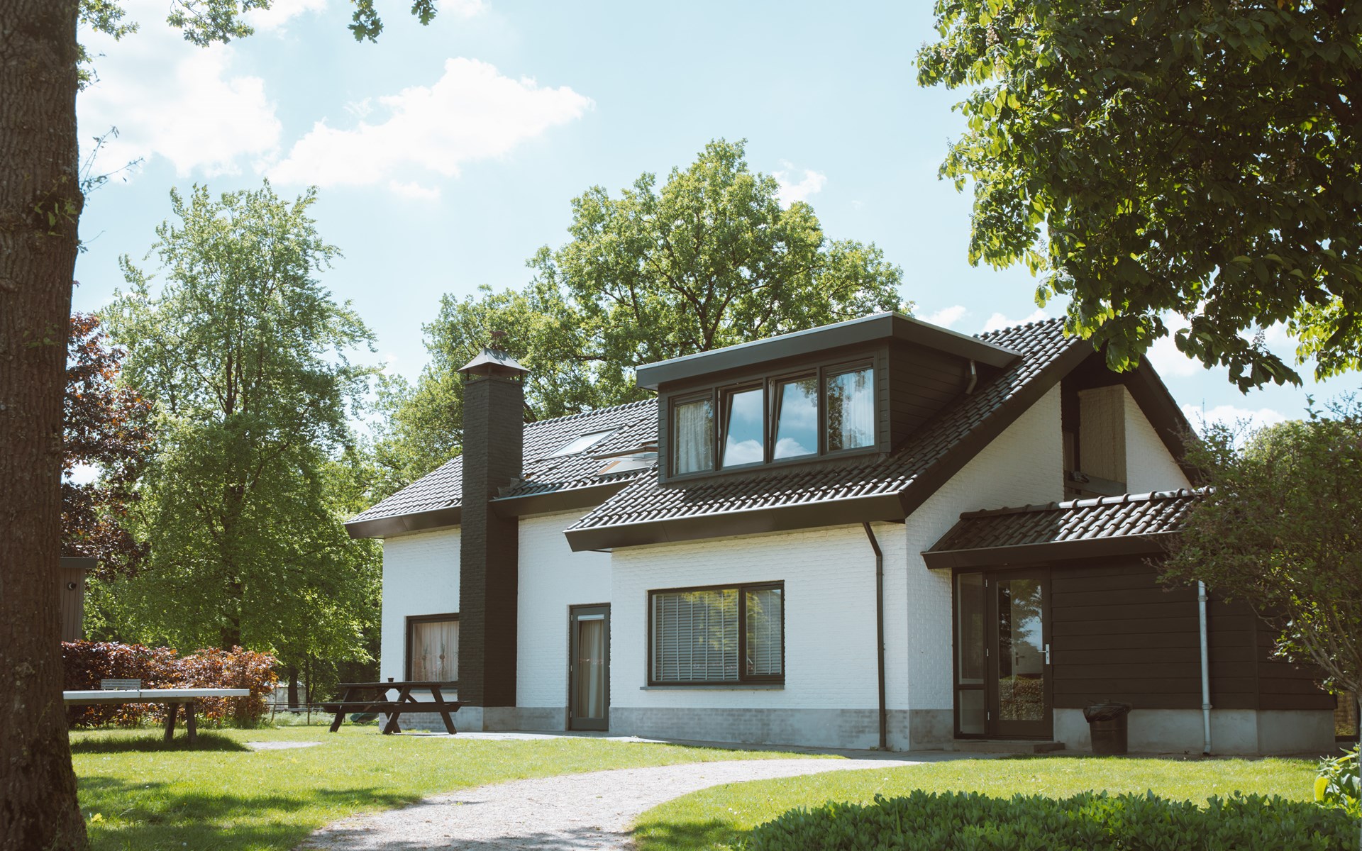 De groepsvilla is prachtig gelegen aan de rand van het park.